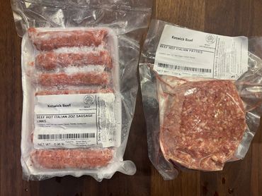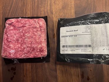 We currently have ground beef, in one pound packages, that is frozen and ready for immediate delivery. Our ground beef includes most of the meat from an animal (less steaks like Filet Mignon, Ribeye, NY Strip and Sirloin). It is very unusual to have such high quality cuts of beef included as ground beef. This combination creates burgers, spaghetti and tacos (among other dishes) that is hard to match! Email us to inquire.